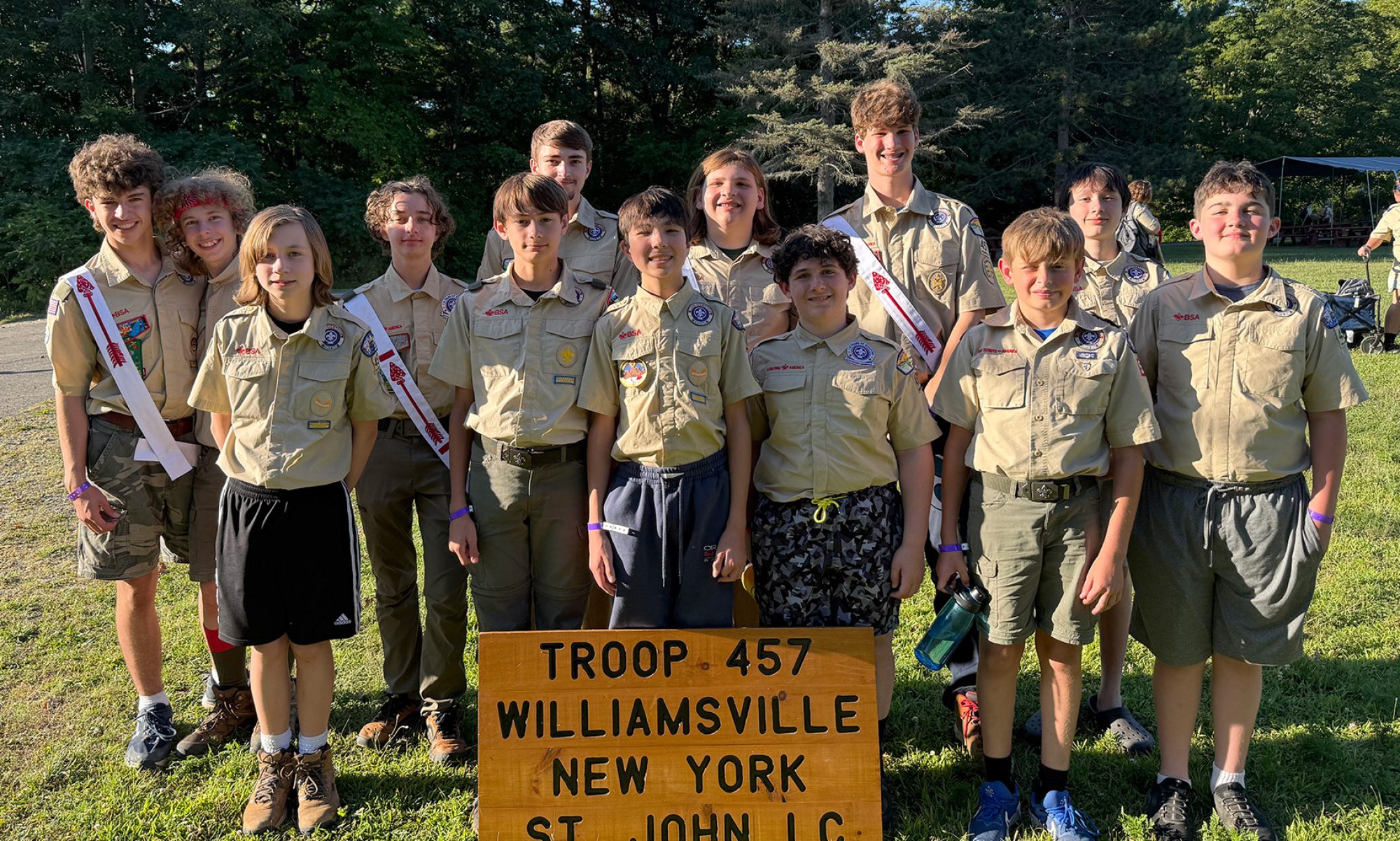 Boy Scout Troop 457 (boys 11 to 17 years old) is chartered to St. John Lutheran Church, located at 6540 Main Street in Williamsville, NY, and meets in the Fellowship Hall most Wednesday nights during the Williamsville District school year from 7:00 PM until approximately 8:30 PM. We appreciate the church's generosity for serving as our charter organization and for allowing us to use their facilities for our meetings. Please note that Troop members do not have to be members of this church, and while many are not, we do participate in church services on some occasions ("A Scout is Reverent").
